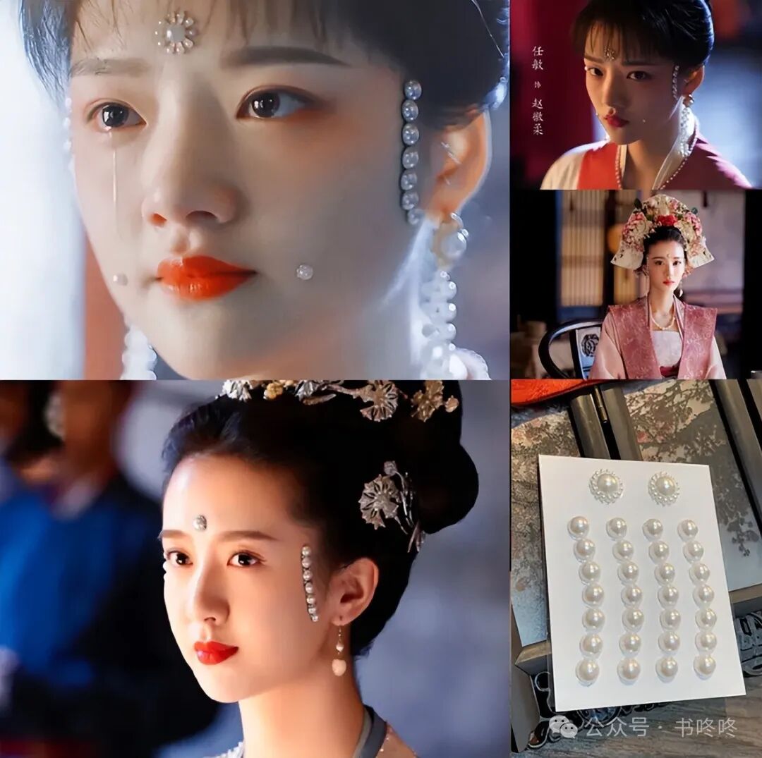除此之外,还有刘涛在《问君能有几多愁》里饰演花蕊夫人,其水晶妆造也让她的脸部更加灵动。