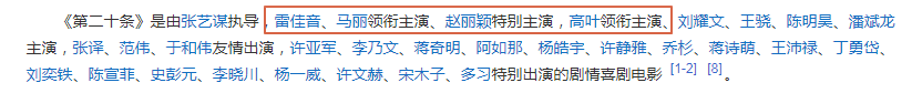 其实这部《第二十条》里,赵丽颖并不是主角,根据百科上的介绍,她是特别主演,马丽与高叶是领衔主演。