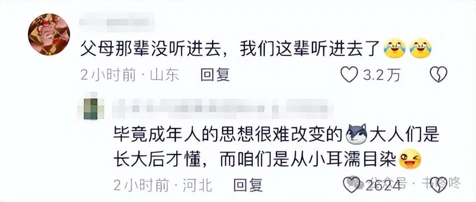 教育具有滞后性,父母那辈没听进去,我们这辈听进去了。