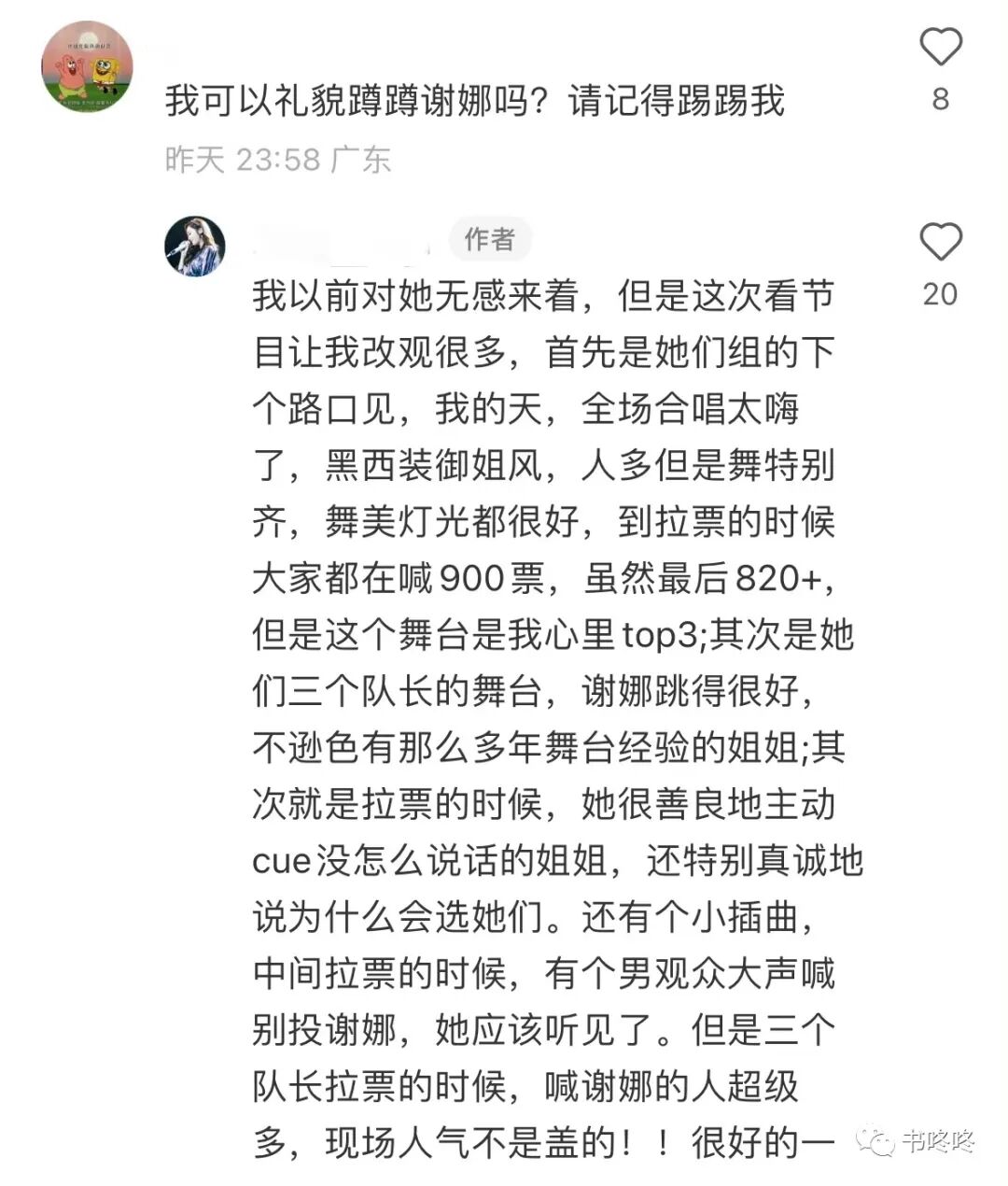 另一边,谢娜在浪姐的舞台上也颇受关注,她变得不再敢说话。