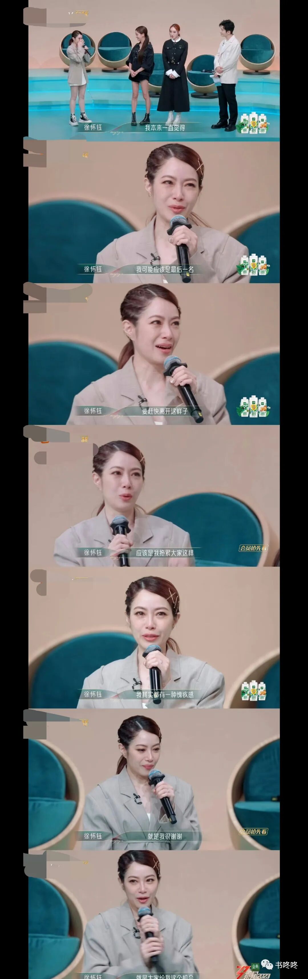 “我本来一直以为我会离开,我觉得是我拖累了大家,从出舞台到第一次公演,我其实一直有一种愧疚感,我觉得我对不起所有的阶级,我很谢谢大家给我的机会”