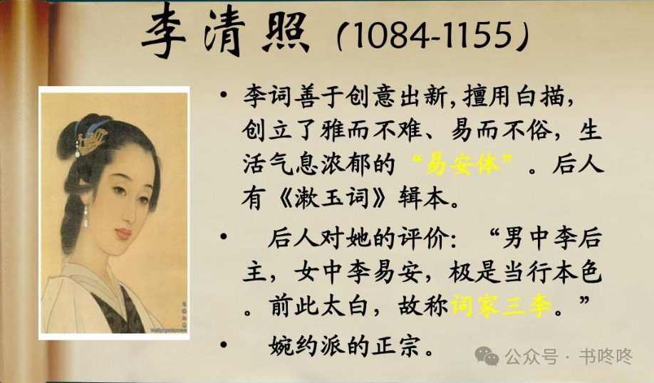 其词作风格有“人比黄花瘦”的婉约,也有“生当作人杰”的豪迈。