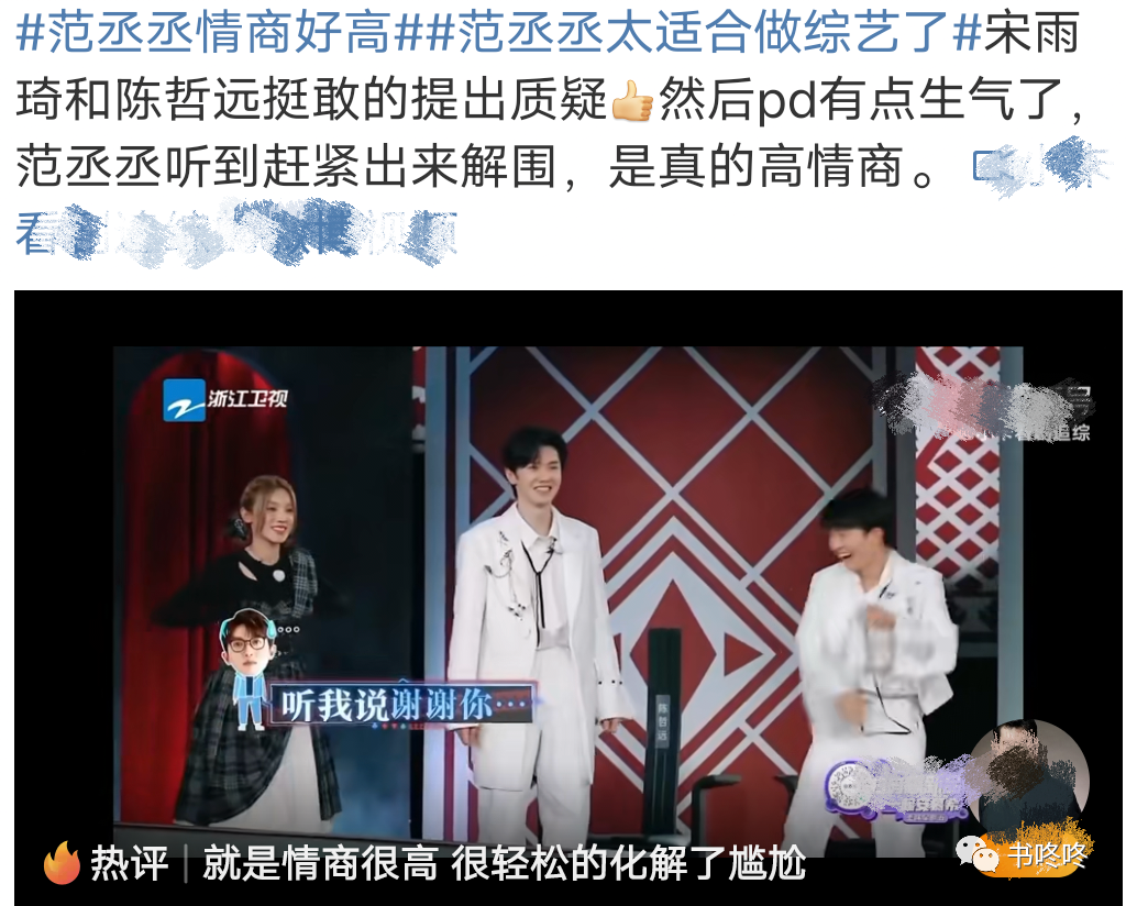 有搞笑天分、抛梗无数的范丞丞实在太适合这个节目了,虽然是青春偶像的代表,但他的偶像包袱为0。