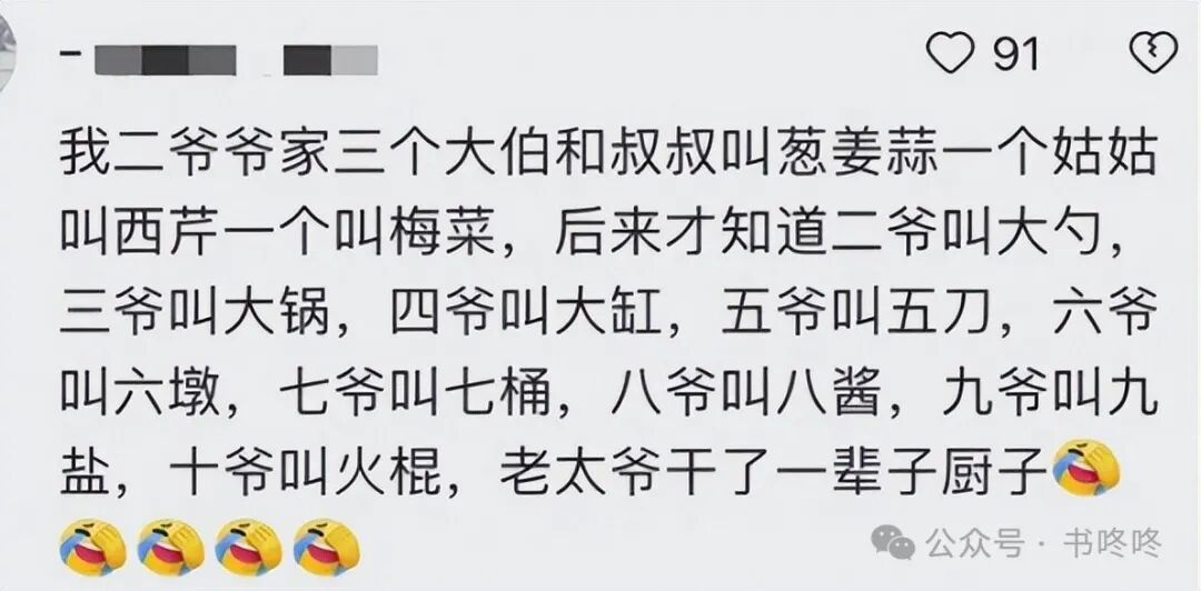 ——我爹叫山川,是不是还行,但是我二叔叫山炮,我东北朋友笑了我四年。