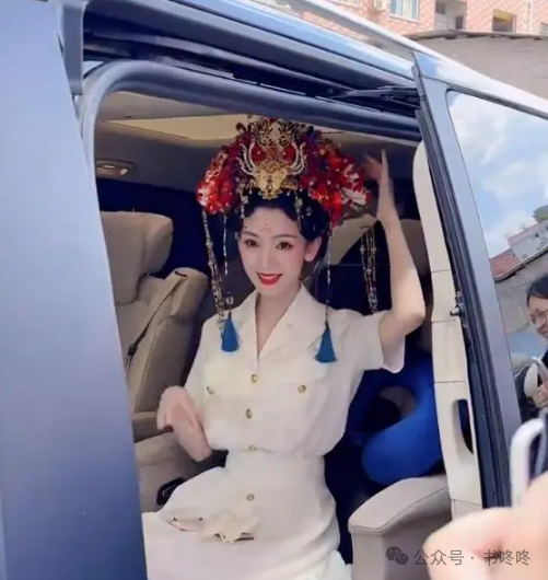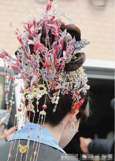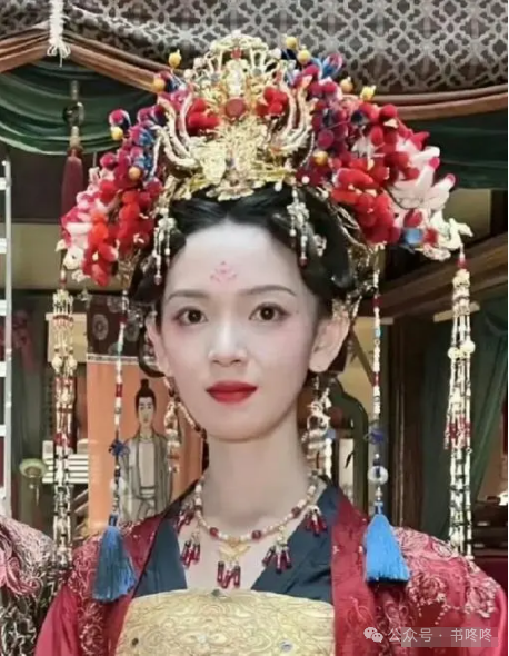 就拿她大婚的这套造型来看,说她简陋吧,头上看起来一大堆东西;说她精致吧,毫无美感。