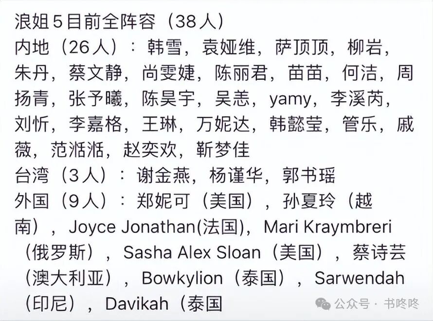 随着浪姐5的名单逐渐公开,大家可以看到,按照地区分了三块:一个是内地艺人,一个中国港澳台艺人,一个是外国艺人。