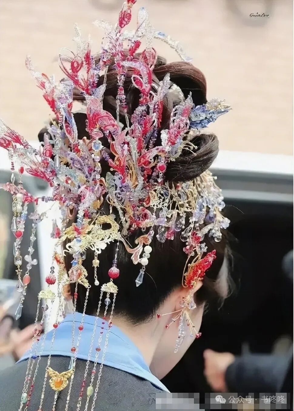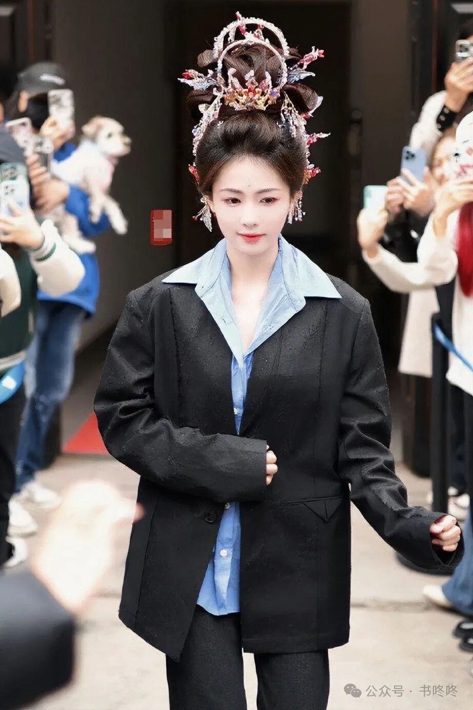 比如她有一套造型,从视频来看应该挺重,白鹿行走的过程中头都不敢低一下,由此可见其分量。