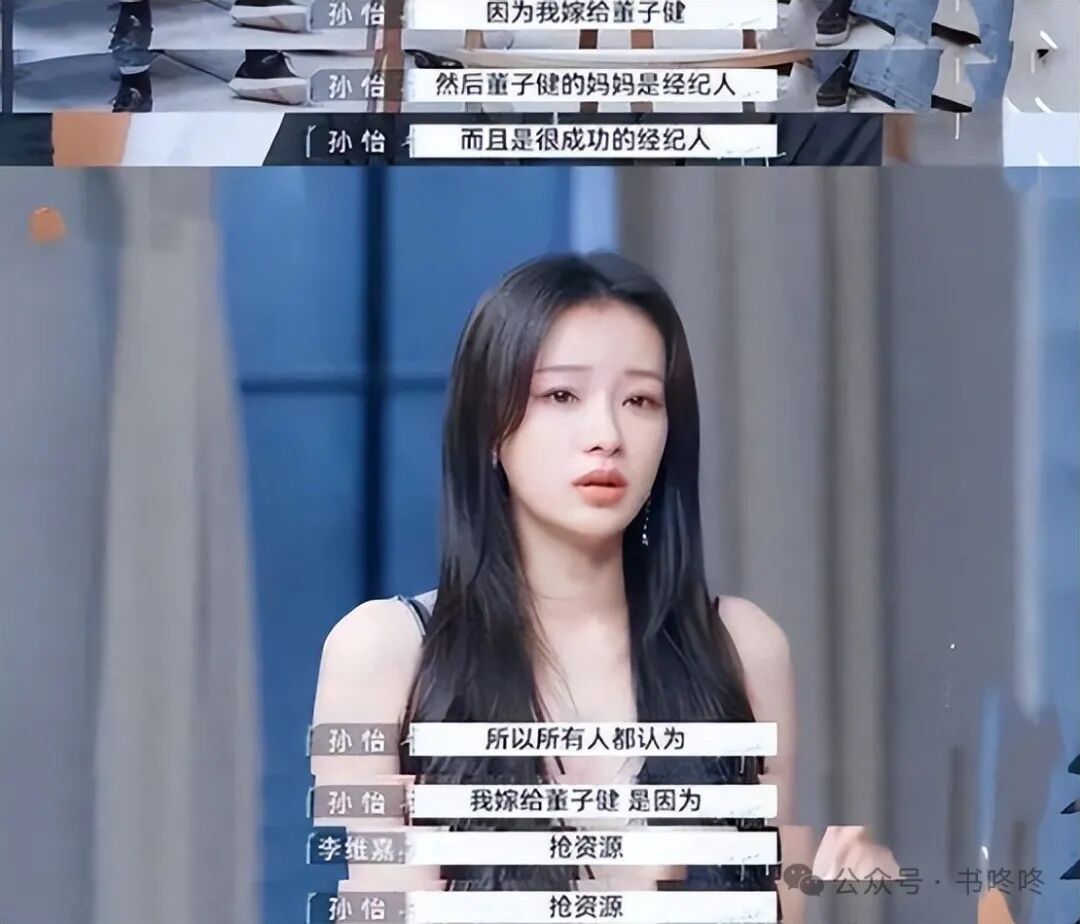 关于孙怡与董子健的结合,大部分说法是孙怡为了男方家里的资源,但是直到两人结婚此传言也未得到证实。