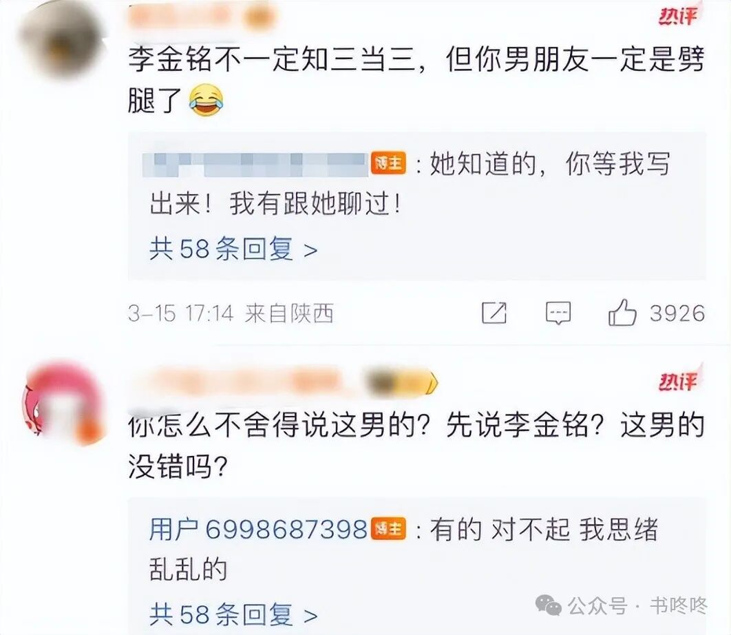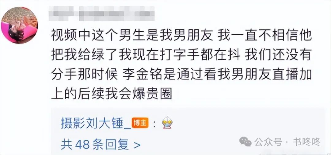 有人说:我刚从上个视频看到李金铭谈恋爱了,下个视频她就“三”了?前后不过两分钟。