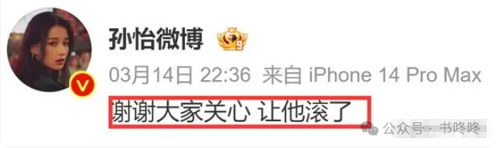 接着,孙怡发出的消息是“谢谢大家关心,让他滚了”。