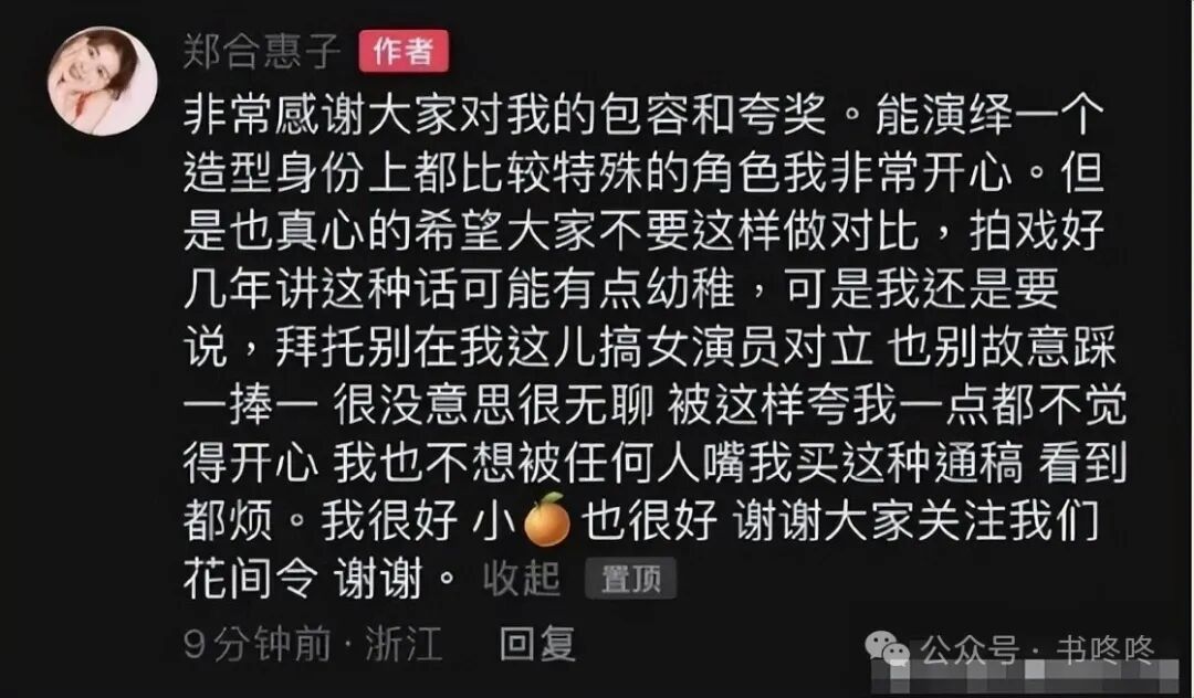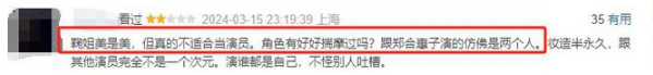 面对大家更看好郑合惠子版杨采薇的评论,鞠婧祎粉丝表示:对方主要是沾了先演的光,给观众形成了先入为主的刻板印象。