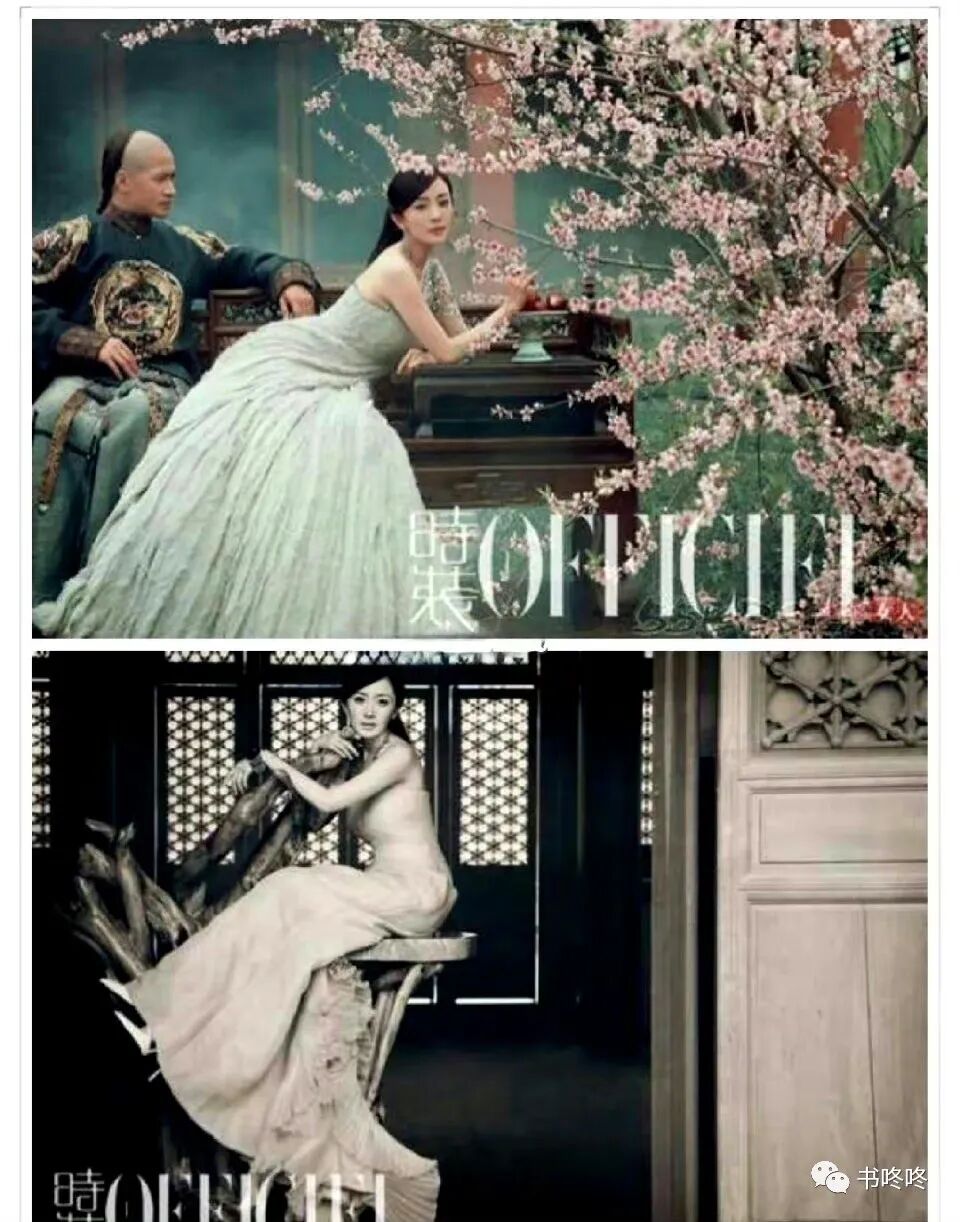 当时这部剧播出之后,一期杂志的创意也很大胆,封面上,杨幂穿着现代服饰,而冯绍峰和何晟铭穿着阿哥服饰。