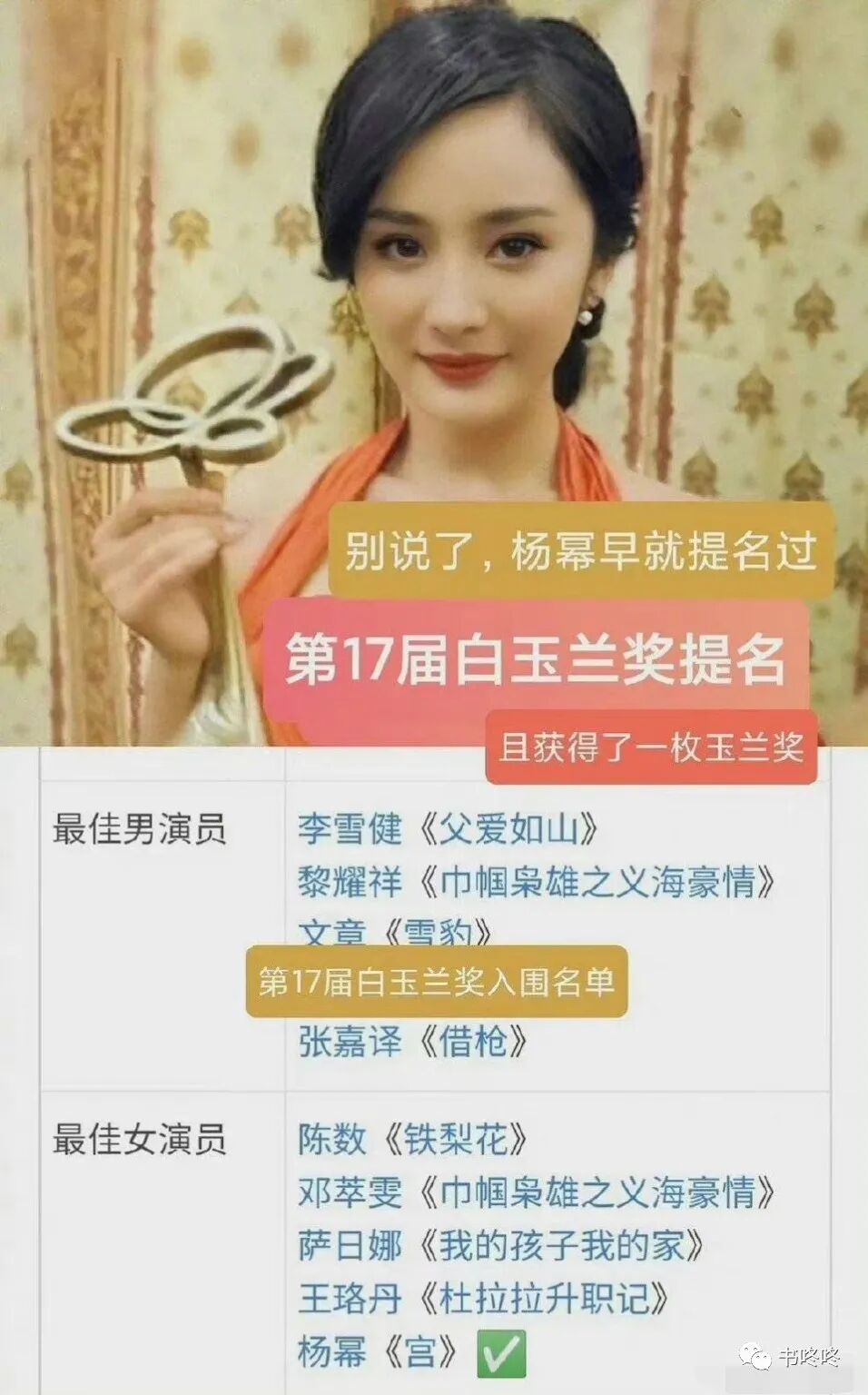 最近白玉兰提名下来了,许多网友提到了杨幂,原来当年她已经凭借《宫》得到了白玉兰视后的提名。