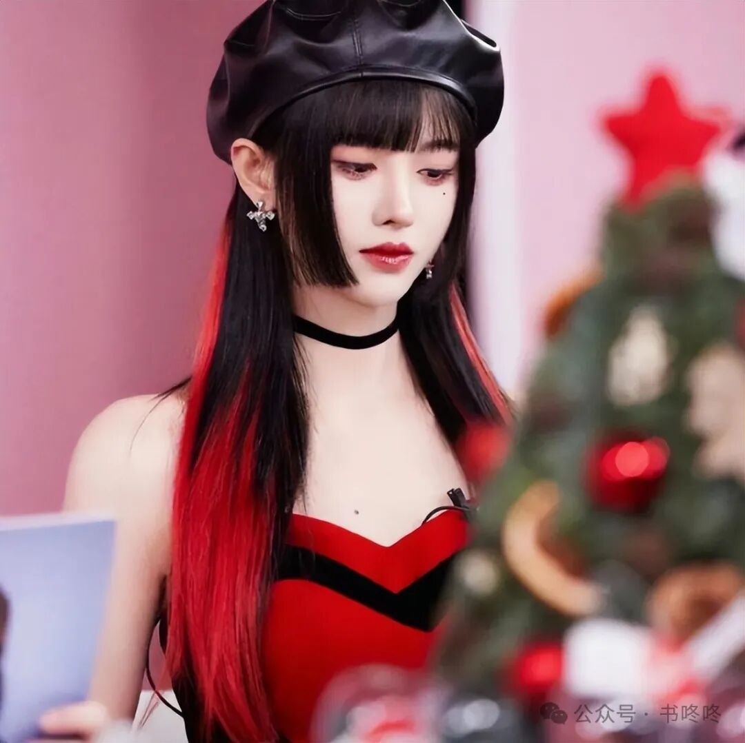 而且她在整体造型上又增加了一顶贝壳帽,给公主切造型增加了许多酷飒的味道,还漂染了红色头发,红与黑的撞色真的好绝。