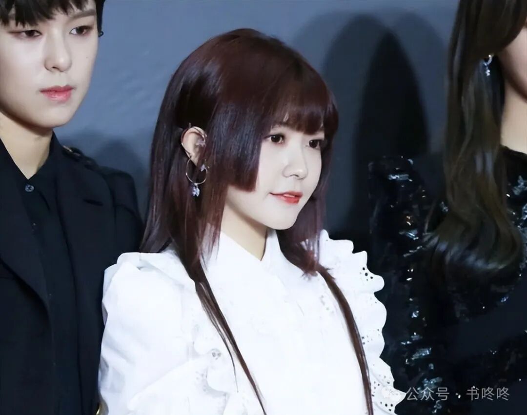 只不过她的造型也跟别家略有不同,首先是额前有空气刘海,这时候显然不再适合厚重的公主切了,所以她两侧的刘海也更加轻薄。