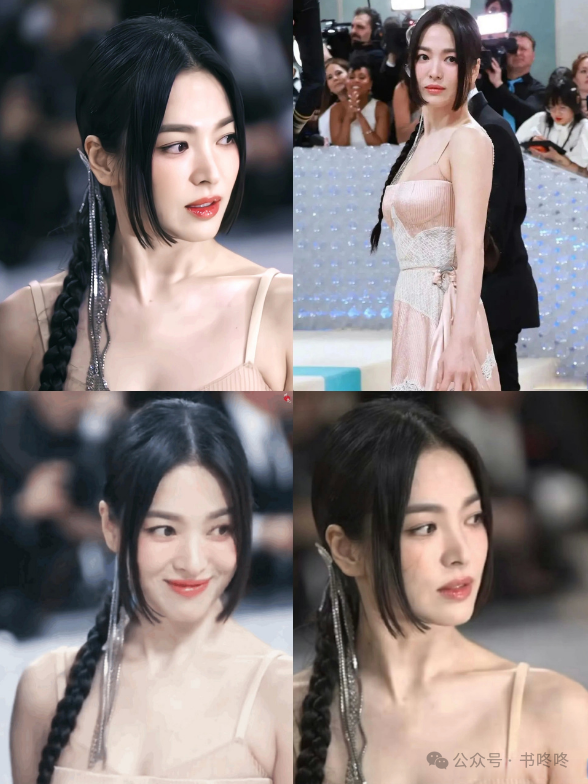宋慧乔也有过公主切的造型,只不过她将后面的头发做成了麻花辫的造型,再搭配着银色发带,展现了一种属于公主切的温柔感。