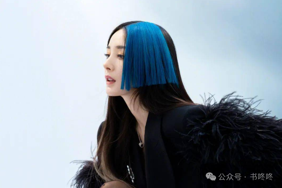 杨幂的公主切造型,将一侧的刘海染成了蓝色,再搭配黑色皮风衣,势必要将帅气贯彻到底。