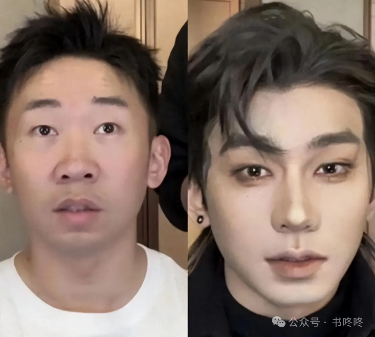 这样的“爆改”根本无法离开聚光灯和镜头,不然其厚厚的粉底就完全暴露了,而这无疑是最低级的化妆。