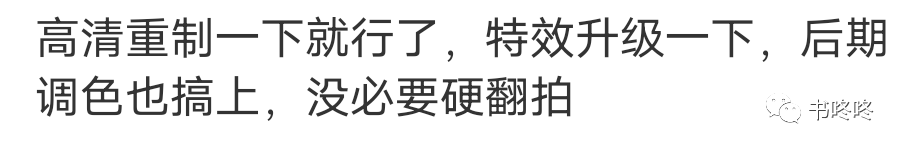 可惜在最开始,影视剧对剧中剧情、台词、人物的斟酌已经几近完美,新版改了之后,很容易导致精华缺失。