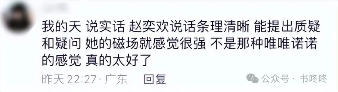 更有网友坦言,赵奕欢一直没红,可能也跟她永远不卑不亢、不与别人同流合污的性格有关,毕竟在娱乐圈,没有资源和人脉,或者得天独厚的优势,基本寸步难行。