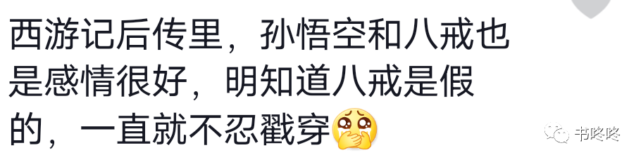 还有许多观众磕到了《西游记后传》,说剧中悟空早就发现了八戒是假的,可是他一直忍着没有揭发。