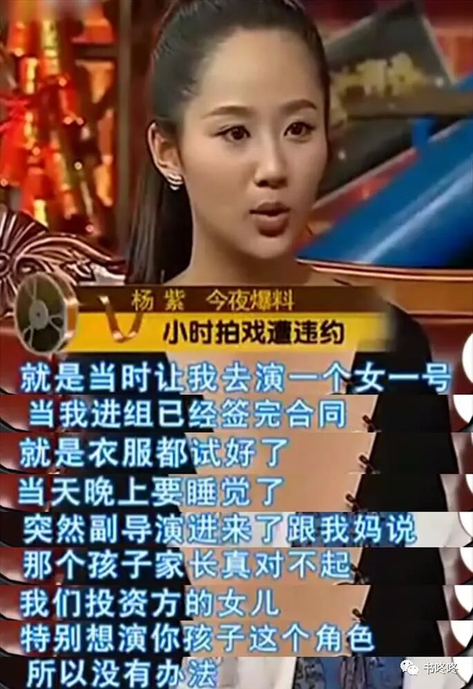 杨紫也说过自己曾经被换角色的经历,合同已经签了,已经跟妈妈入住了酒店,但是之后又被赶出去了,因为投资方的女儿要演那个角色。
