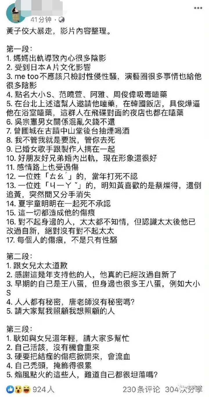 黄子佼拉人“共沉沦”,接连爆料大小S、阿雅、范晓萱、吴宗宪.......