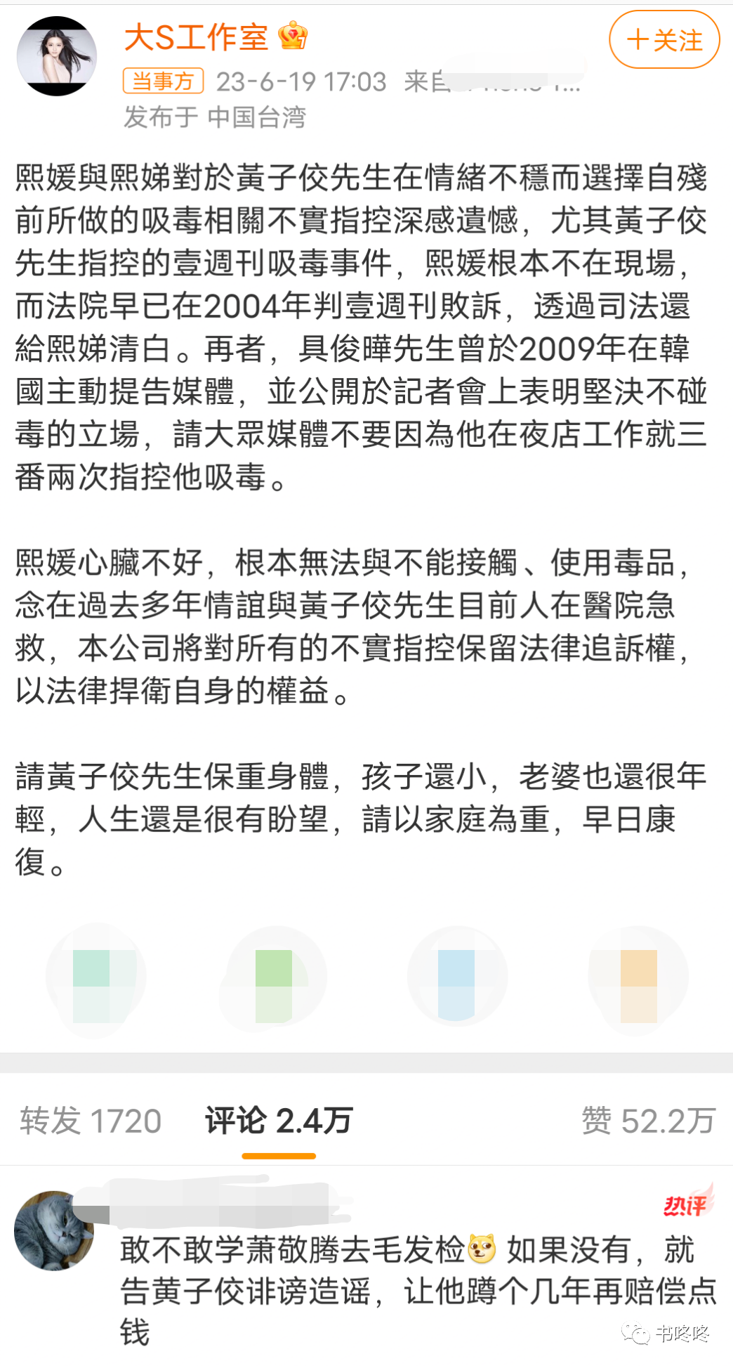 很快大小S这边也发布了联合声明,否认了黄子佼爆料中有关她们的一切。