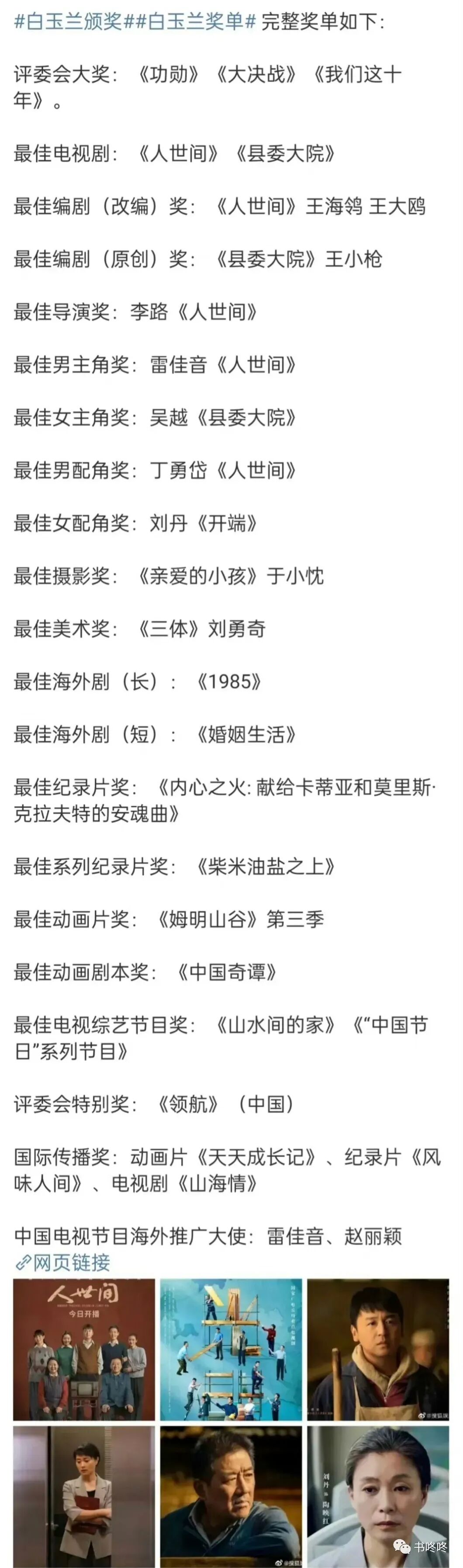 网友期待了半年的白玉兰颁奖晚会终于落下了帷幕。