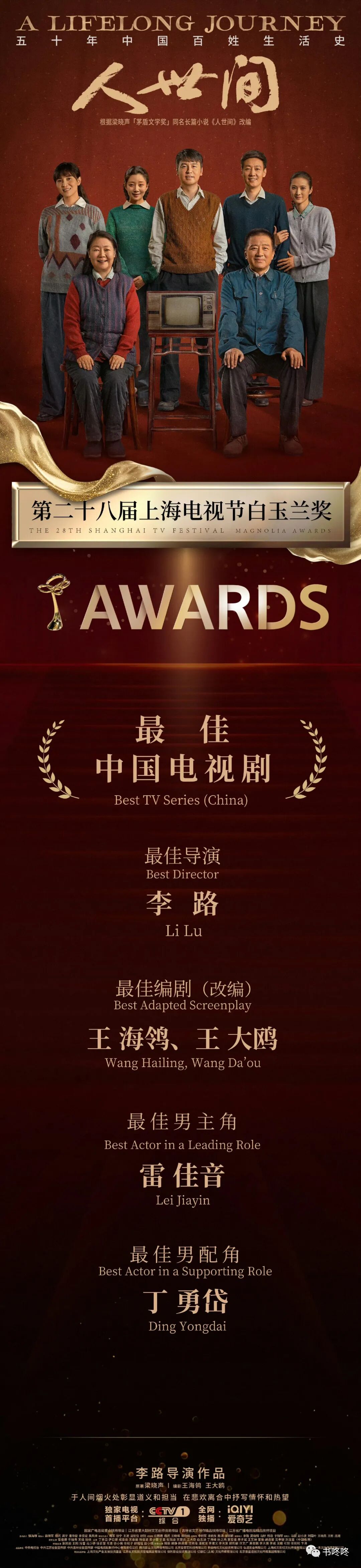 其中雷佳音靠着《人世间》拿下了白玉兰最佳男主角,也就是视帝的称号,吴越凭借《县委大院》拿下了最佳女主角,实际的视后。