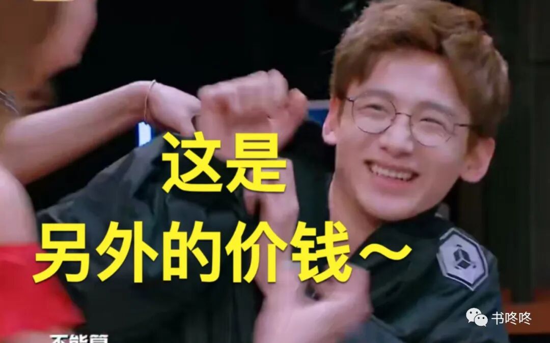 随着与嘉宾们越来越熟悉,也越来越会玩了,他的玩梗天赋逐渐彰显,比如那句“我一下子就把他推开了,这是另外的价钱”。