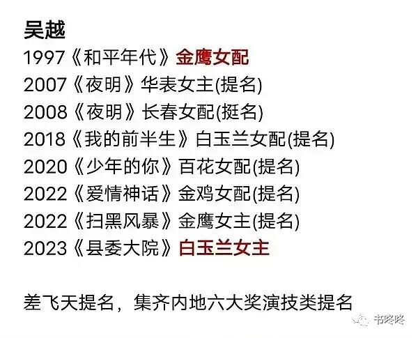 戏份很少的女主就不配拿视后,这个定义太狭隘了,也将吴越裹挟了。