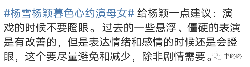 而杨颖也因为眼睛太大,演戏的时候不自觉会出现瞪眼睛演法,可惜眼神戏不到位,因此网上一直有关于她演技的争议。
