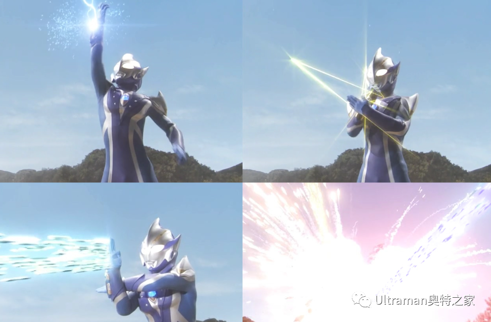 希卡利最得意的必杀光线。通过高举佩戴【骑士气息】的右手,将全部能量集中之后,在双手交叉双手,随后组合成十字型(右手垂直在外、左手水平横置在内),从右掌边缘放射出的蓝色高温光线。与梦比姆射线同样内含斯派修姆物质,但威力凌驾于梦比姆射线之上。