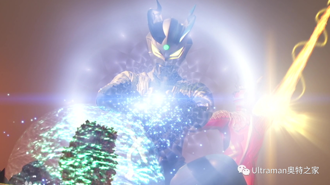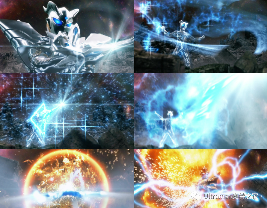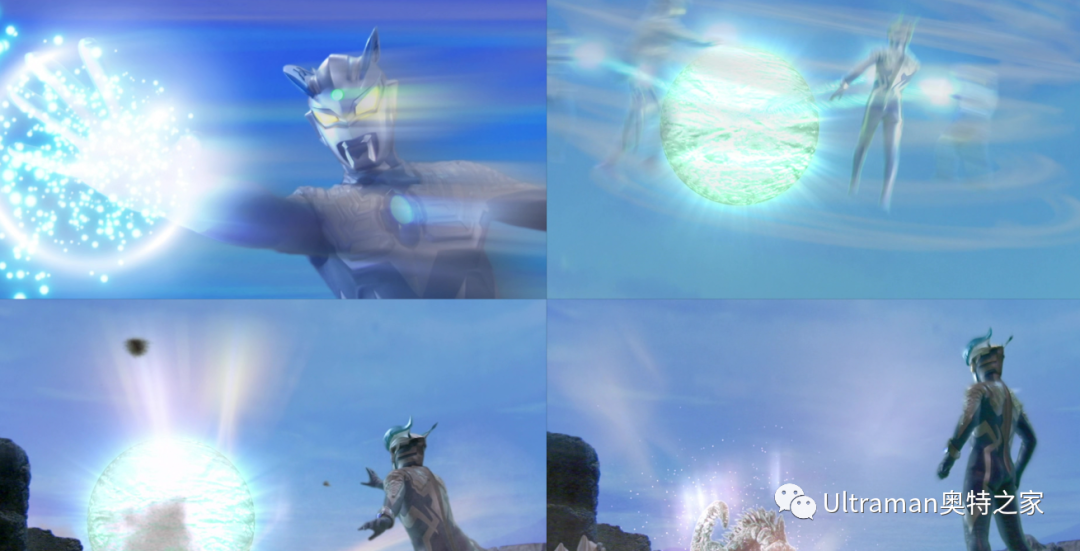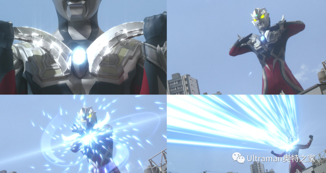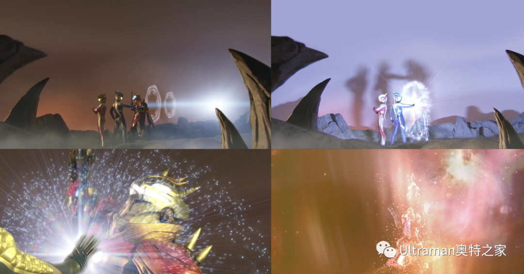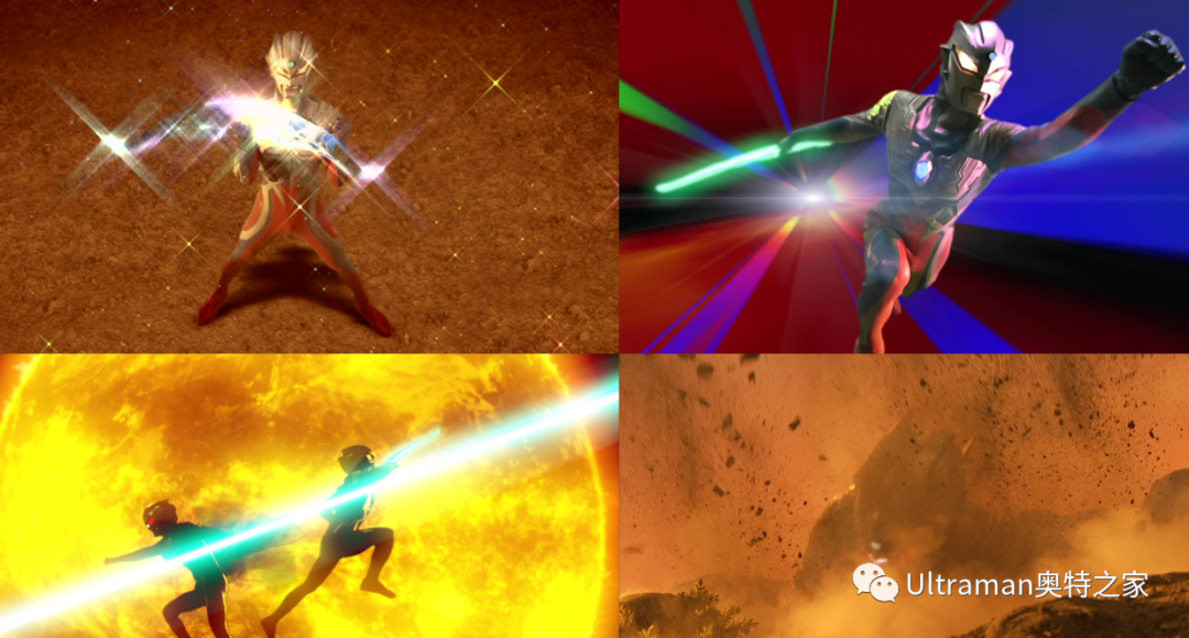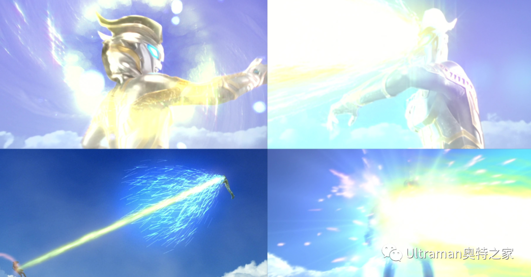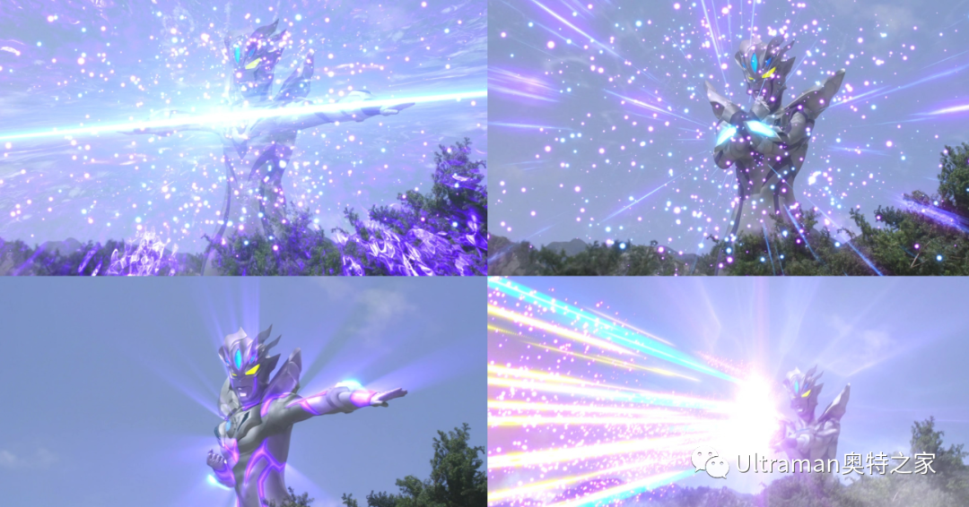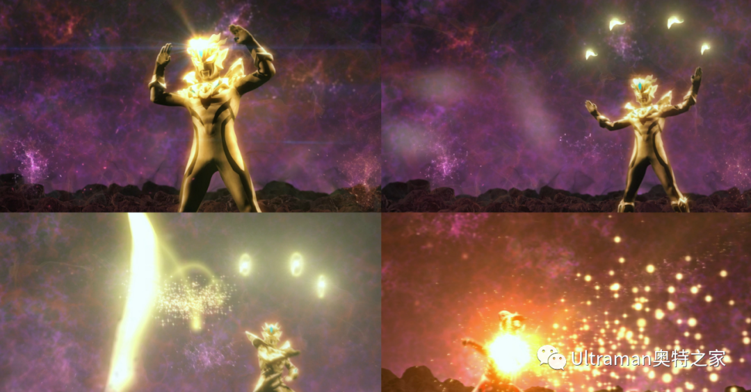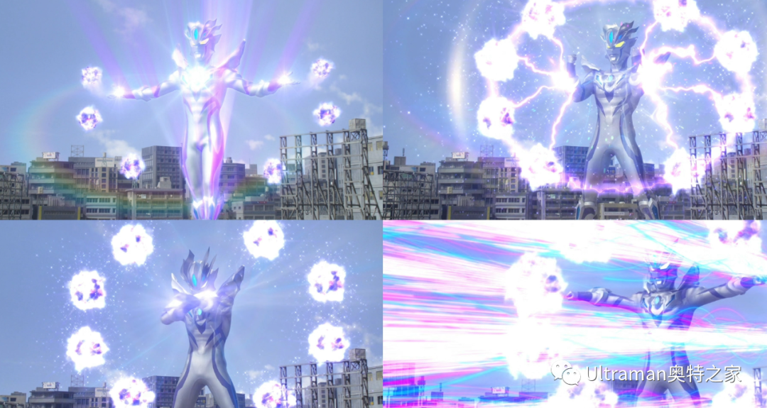 将奥特胶囊蕴藏的四大奥特战士之力集结后发出8个光球,从那里放出光线的必杀技,是超限形态的代表必杀技。