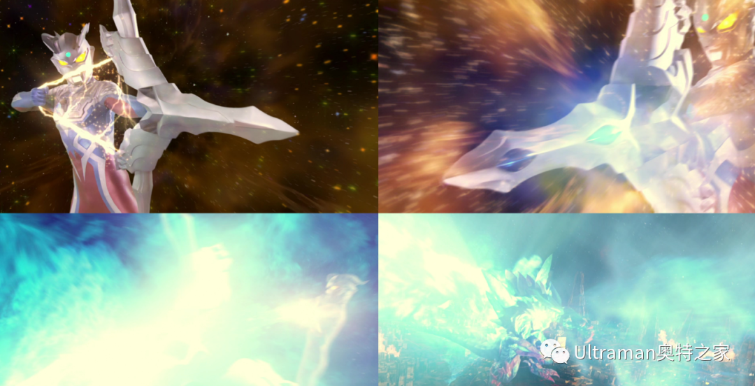 艾克斯剧场版:和银河奥特曼、维克特利奥特曼、麦克斯奥特曼、奈克瑟斯奥特曼共同对战,各自击败一只暗剑迪玛伽。