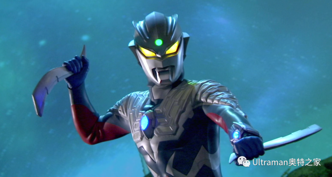 赛罗头镖使用时会带有绿色或白色的光,也可以与拿着武器的敌人对峙。