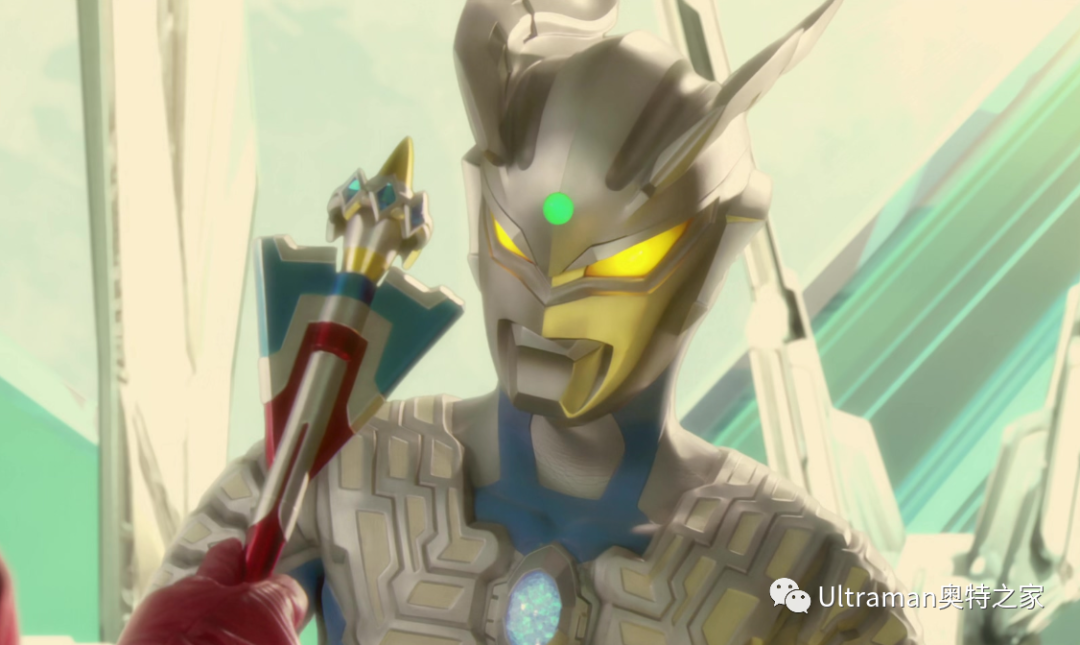 赛罗在泽塔升华器上汇聚能量形成能量刃,对敌进行近身斩击。
