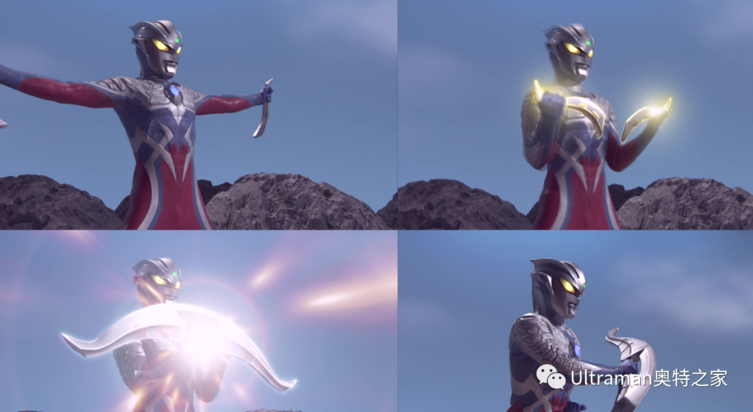 赛罗将头镖安装在计时器上,光刃的能量转化为光线,照射范围广阔的强力光线技,是常态赛罗的单体最强光线技能。
