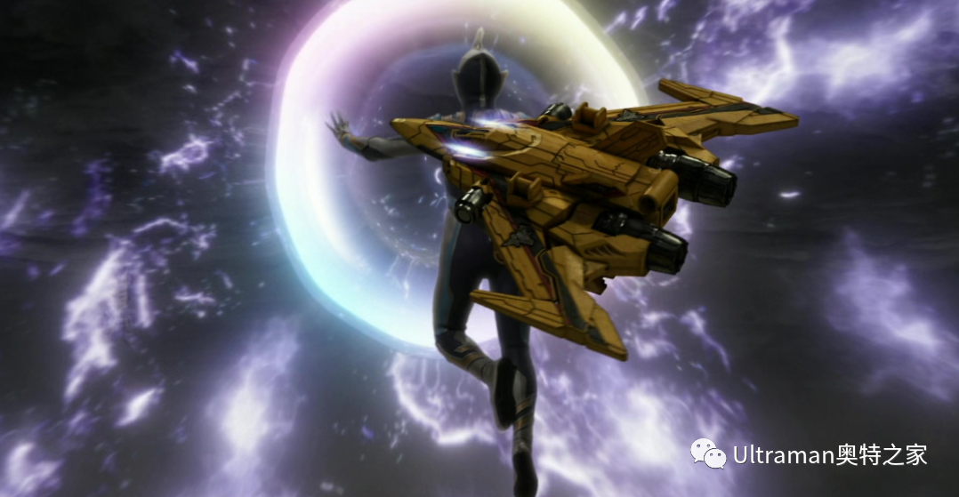 在圆环武装·复合剑上装载特利迦奥特曼·复合型胜利超越之钥,汇聚哉佩利敖能量,形成荧紫色光之刃进行斩击。