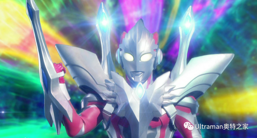 当奥特曼和迪迦奥特曼交叉飞行释放能量,使艾克斯奥特曼超越型贝塔火花装甲吸收天空之光与大地之光后进入圣者模式,在背部张开闪耀着水晶光芒的“ 虚拟之翼”的强化版究极进化姿态,可以使自己的能量上限达到最高,也能够帮助其他的奥特战士恢复并充满能量。