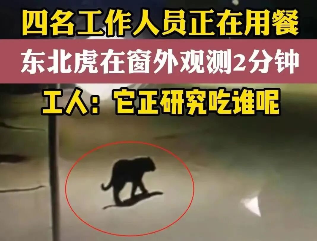 可正当几人低头吃饭时,身旁的一位工作人员突然大声叫了起来:“有老虎!”边说边用手指着外面。