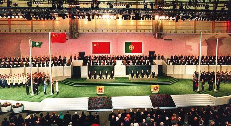 1999年12月20日0时,葡萄牙末任澳门总督韦奇立和新中国首任澳门特别行政区行政长官何厚铧在澳门新口岸交接仪式会场场内交接澳门政权,宣告了一个全新时代的来临。