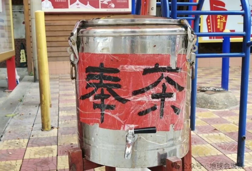 泉州的免费之风,不止体现在景点。在这座城市里,你随时随地都可以喝到免费茶水。很多超市或居民区楼下,都会放一个大保温桶,配些纸杯,提供给路人饮用。