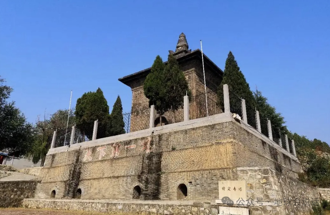 安阳修定寺塔位于安阳西北30公里的清凉山,它建于公元494年,已有1500多年的历史。相传北魏时期,有一个叫张猛的僧人在这里修行,曾用袍子把老虎裹起来救了北魏孝文帝的性命。孝文帝为纪念这个故事,命人在此建造了一座寺庙,取名“修定寺”,并建造了这座方形的砖塔。