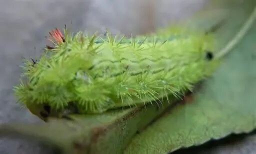 ④事物都是相生相克的,既然它能产毒药,那么它也能产解药,其实就是它自己没事肯定有分解毒药的物质。这虫子喜欢吃相对硬点的树叶,小时侯老家青杠树叶子上特别多,有次从树下路过时一个蜂飞过来,我怕蜂蛰到我,本能的双手一抱头就被这虫子蛰到手背,好痛好痛,三天过了才不痛了。除此之外,这东西惹不起,通过我的观察,不碰上他,就已经中招了。他那刺会飞,我自然繁殖的小树,头五年干干净净,不知道哪一年就招来的洋辣子。现在的树已经18年了,比我腰还粗,他离所有的树都很远,凭什么就能长出洋辣子?可害死我了,是不是洋辣子变成了蝴蝶,并且会飞呀!