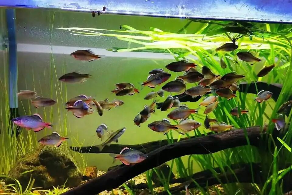 ③我们这里给这种鱼叫“五色鱼”,光听名字就很美啦,五彩斑斓,银光闪闪,我们通常买个虾网,里面放进半根油条,虾网扔进水塘里过半个小时捞出来里面就有好多这种鱼,带回家养在鱼缸里非常漂亮,密度不能过多,多了也会缺氧而死,长时间缺乏光照鱼身上的色彩也会消失。