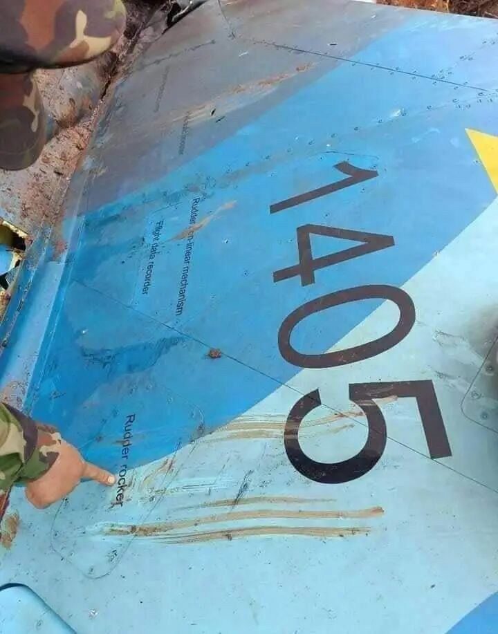 可以看到飞机机翼基本完整平铺在地上,机体残骸基本都紧密连在一起,没有大的散步,几乎是水平拍在地面上,这说明了飞机的高度和速度都不是特别高,某些消息说是FN-6防空导弹击落,之前就有不少记录,这一次来看,可能是命中了发动机,发动机停车导致坠毁。