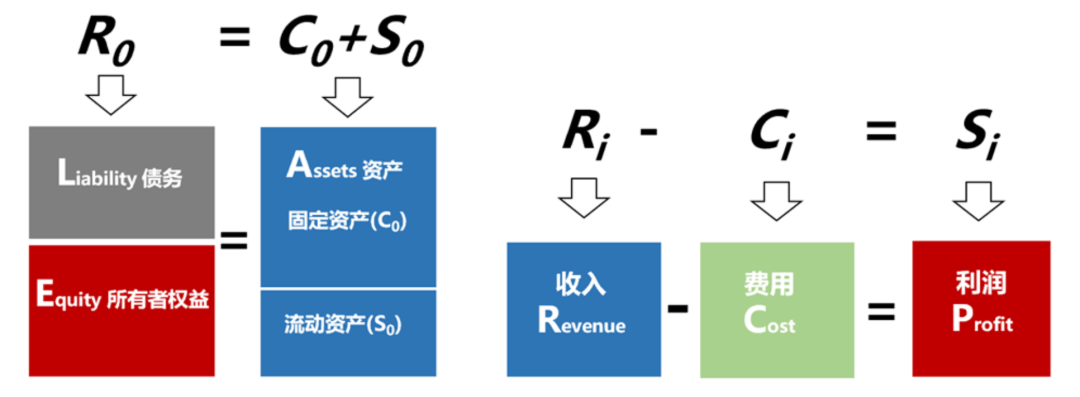 由于两阶段增长模型中的两个等式与会计学中的资产负债表(Balance Sheet)和利润表(Profit Statement)完全对应(见图1),抽象的增长问题就可以转变为直观的财务问题。将增长理论建立在会计理论基础上,我们不仅可以直观地描述经济的增长,也可以预判经济的兴衰。[28]