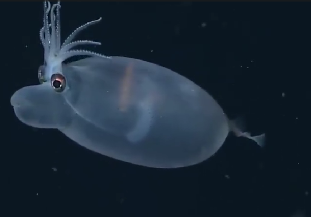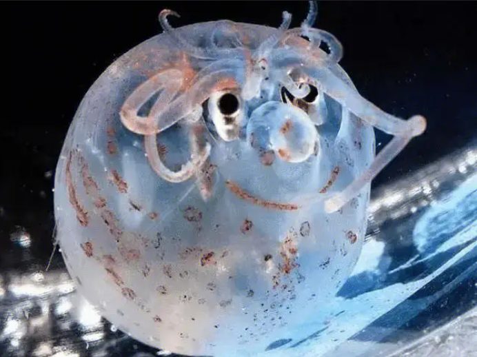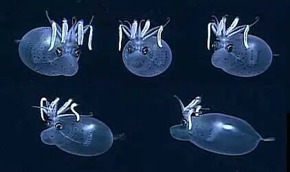 小猪鱿鱼也被称为玻璃鱿鱼,或乌云鱿鱼,因为它几乎是透明的,使得它们非常适应在深海中伪装自己,可以说方圆十米没有对手,绝对是玩捉迷藏的好手了。
